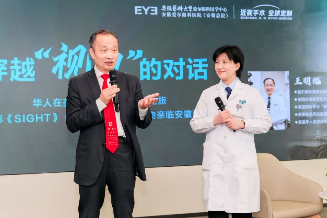 2025年5月4日 —— 哈佛大学与麻省理工学院医学博士/激光物理博士、国际屈光/白内障手术专家、好莱坞电影《SIGHT》原型人物王明旭博士莅临安徽爱尔眼科医院,与安徽爱尔专家团队开展深度对话,共同探讨近视矫正技术革新,通过国际技术发展与本土临床实践的结合,为近视患者带来更精准的视觉矫正方案。